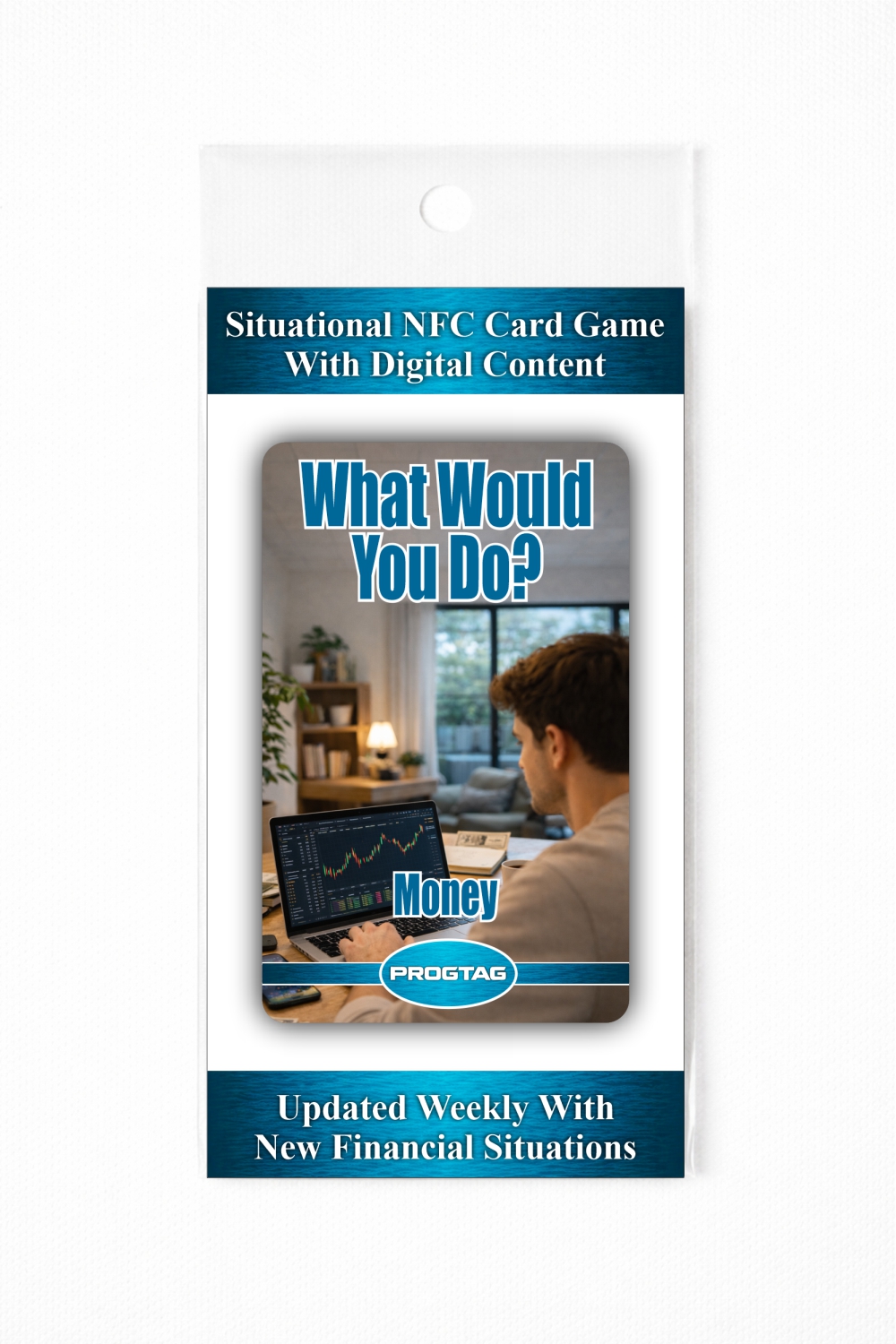 The What Would You Do? (Money) – NFC Card is therefore a continuously expanding and weekly updated digital scenario game that offers users new stories, new decision-making opportunities, and new insights every time it is used.